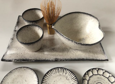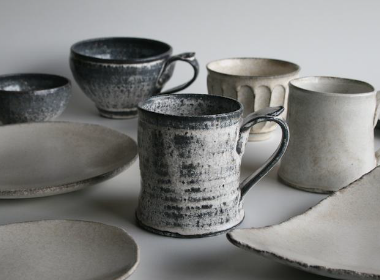 グレイッシュな「炭化白釉(タンカハクユウ)」と「白釉(ハク ユウ)」を中心とした器を制作。シンプルでありながら「力強さ」や「可愛らしさ」を感じられるよう1つ1つ丁寧につくられています。