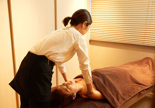 腕から始まり、デコルテなど体の全面に施術をします。お顔や頭、足なども時間によっては施術をします。